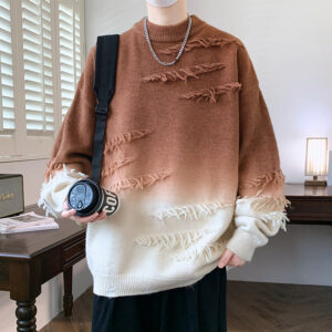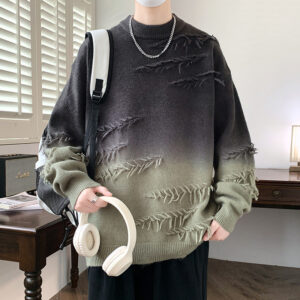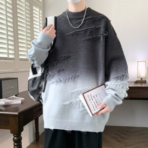 Dive into the cutting-edge style with hand-distressed details and striking urban gradient colors. This soft cotton blend sweater lets you boldly declare your spirit.